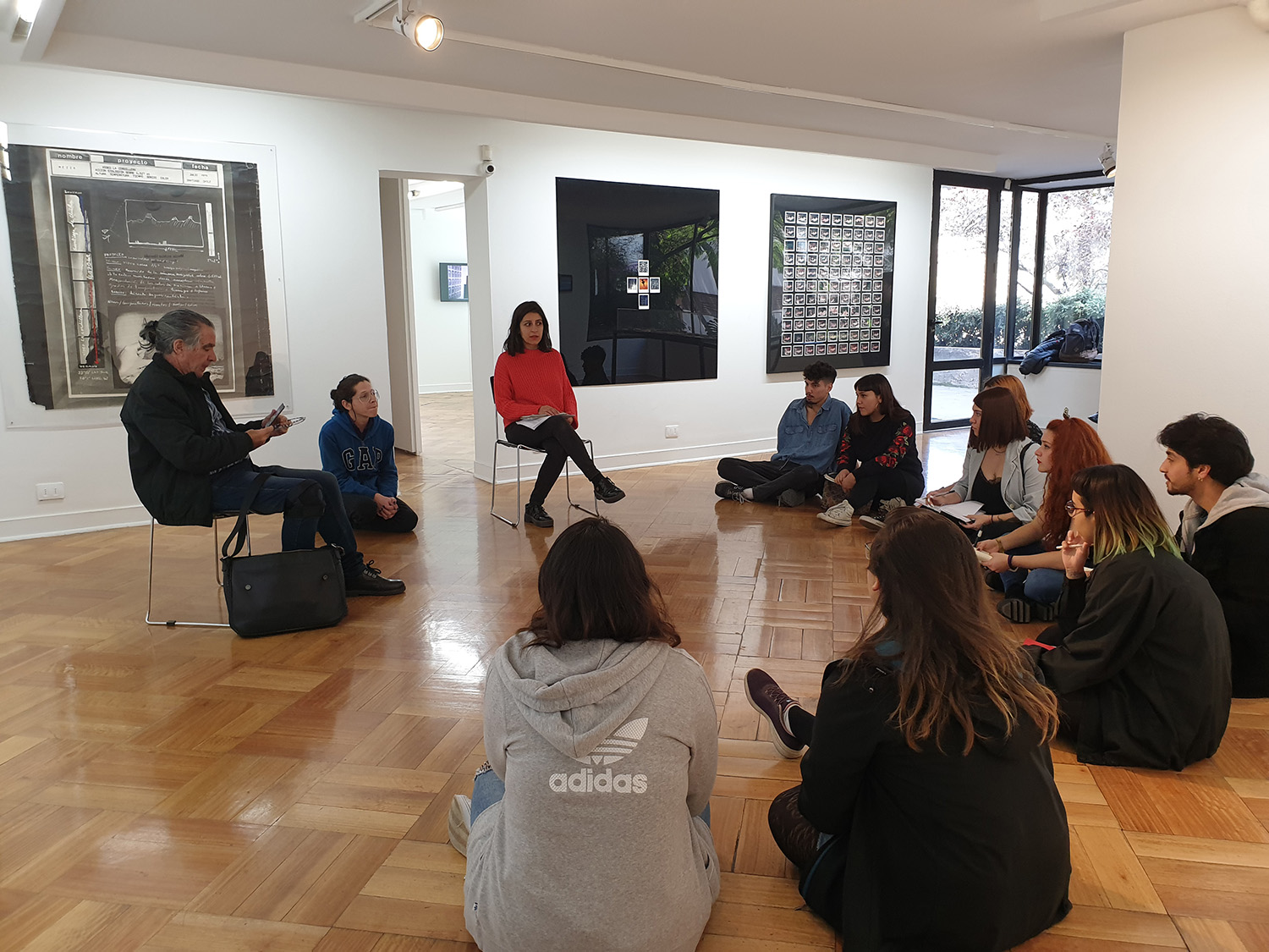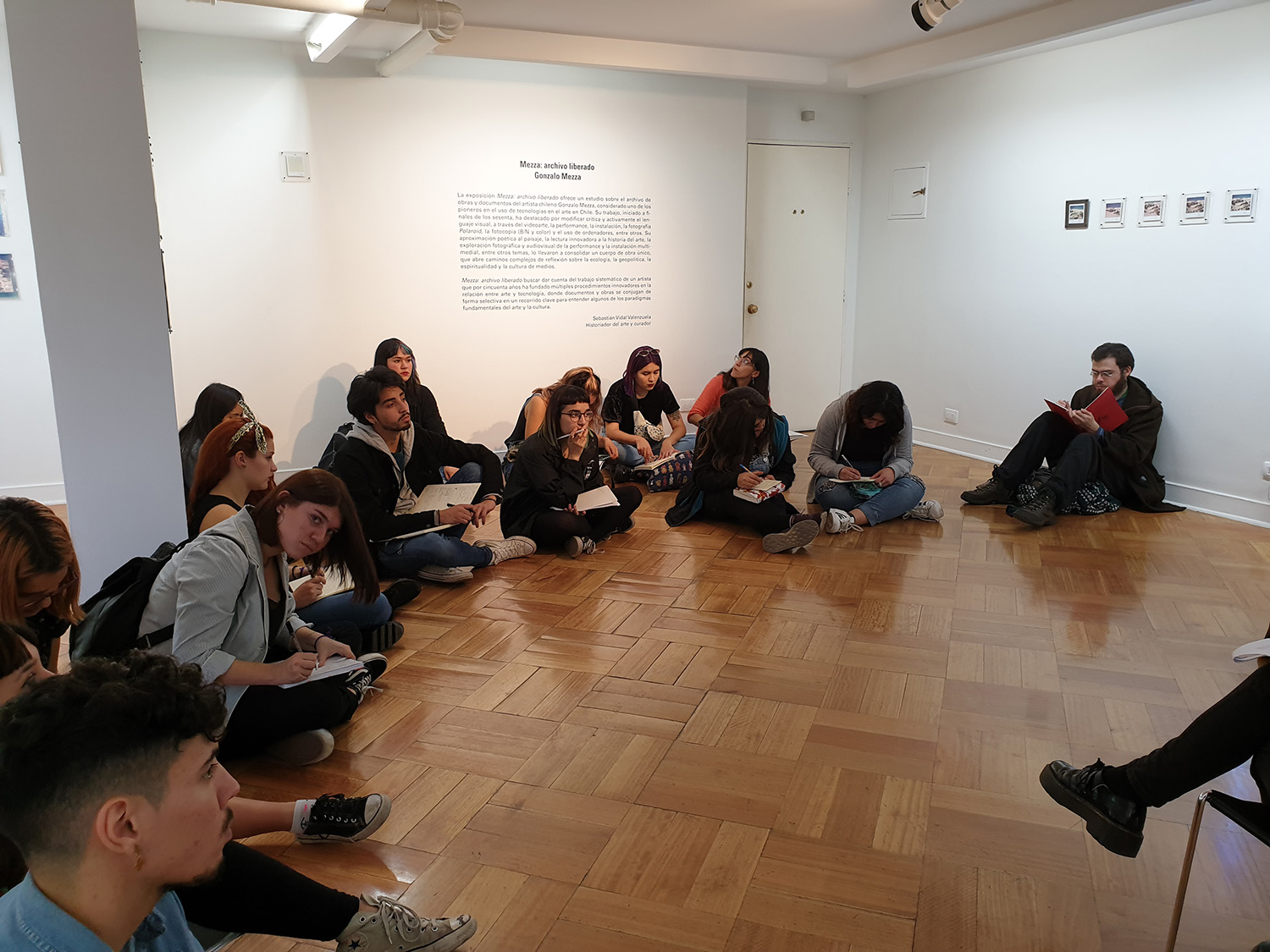 Realizamos un Encuentro con el artista Gonzalo Mezza en torno a la muestra Mezza: archivo liberado, en esa oportunidad tuvimos la posibilidad de conversar sobre su proceso creativo y el trabajo artístico desarrollado entre los años 1970-92. El diálogo abordó temas vinculados a los archivos, los medios, el uso de tecnologías, el desplazamiento de la imagen y el paisaje. La invitación a la actividad la realizamos de manera directa y participó un grupo de estudiantes de artes visuales de la Universidad Andrés Bello.